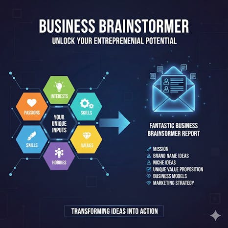 Take the free Business Brainstormer and receive a personalised clarity report based on your skills, passions, interests, experience, and values — sent straight to your inbox.